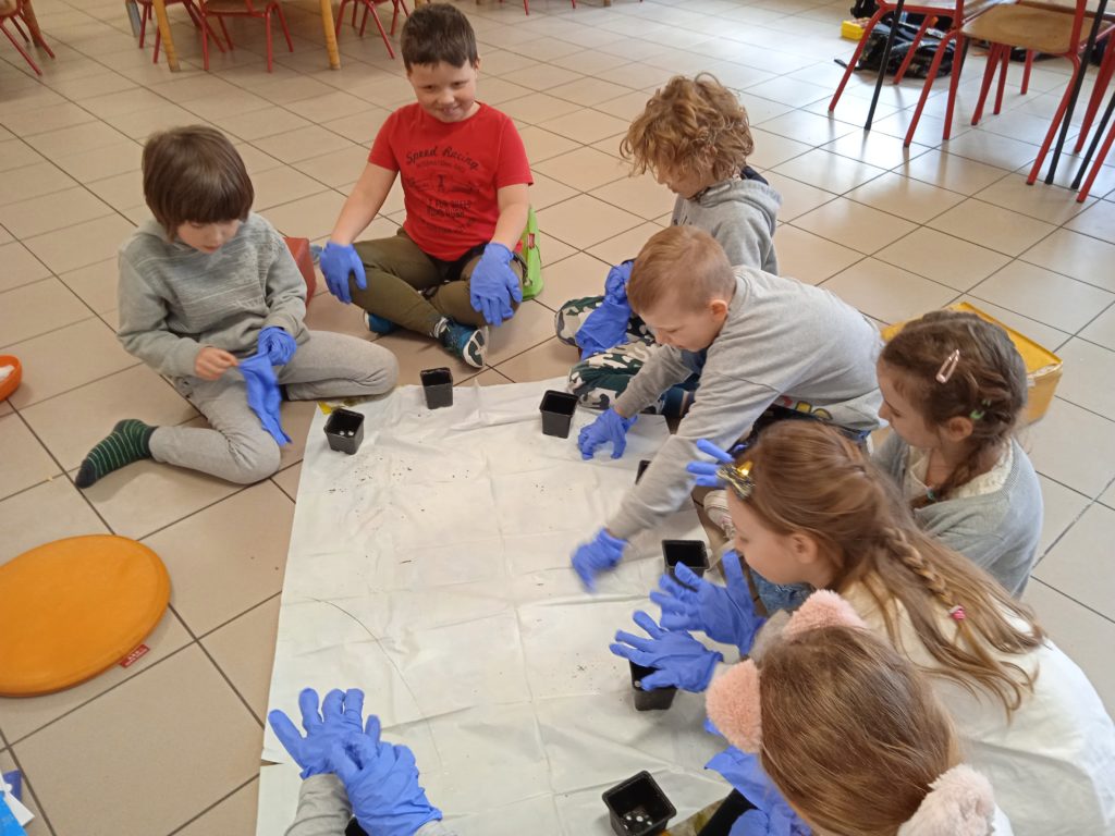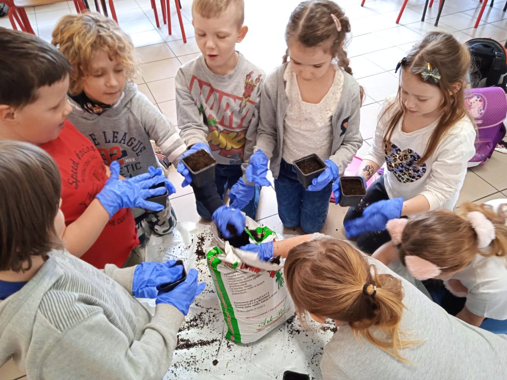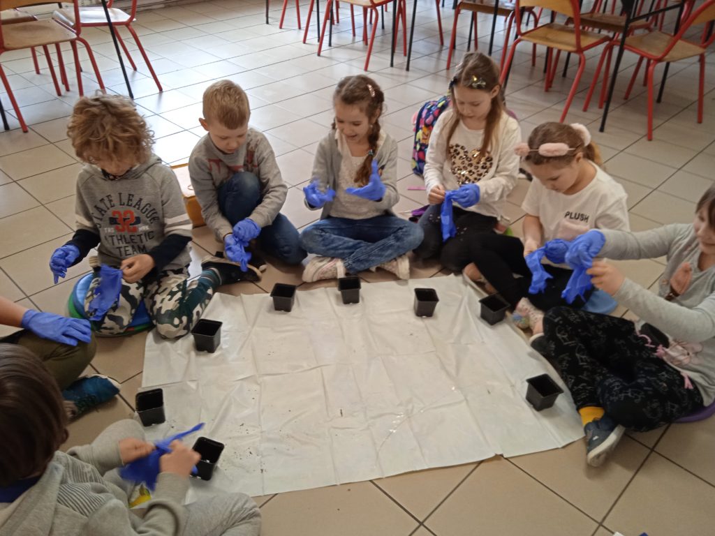 W ramach realizacji programu „Poznajemy zawody z bliska” poznawaliśmy pracę ogrodnika. Uczniowie wysłuchali opowiadania „Mam przyjaciółkę ogrodniczkę”. Czytaliśmy wiersze i zagadki. Rozwiązywalismy krzyżówkę ogrodniczą i quiz wiedzy ogrodniczej. Euforycznie przyjęli propozycję sadzenia i pielęgnacji własnych roslinek. W kolejnych dniach wzięli także udział w zajęcia w ogrodzie szkolnym, gdzie poznali narzędzia ogrodnicze.