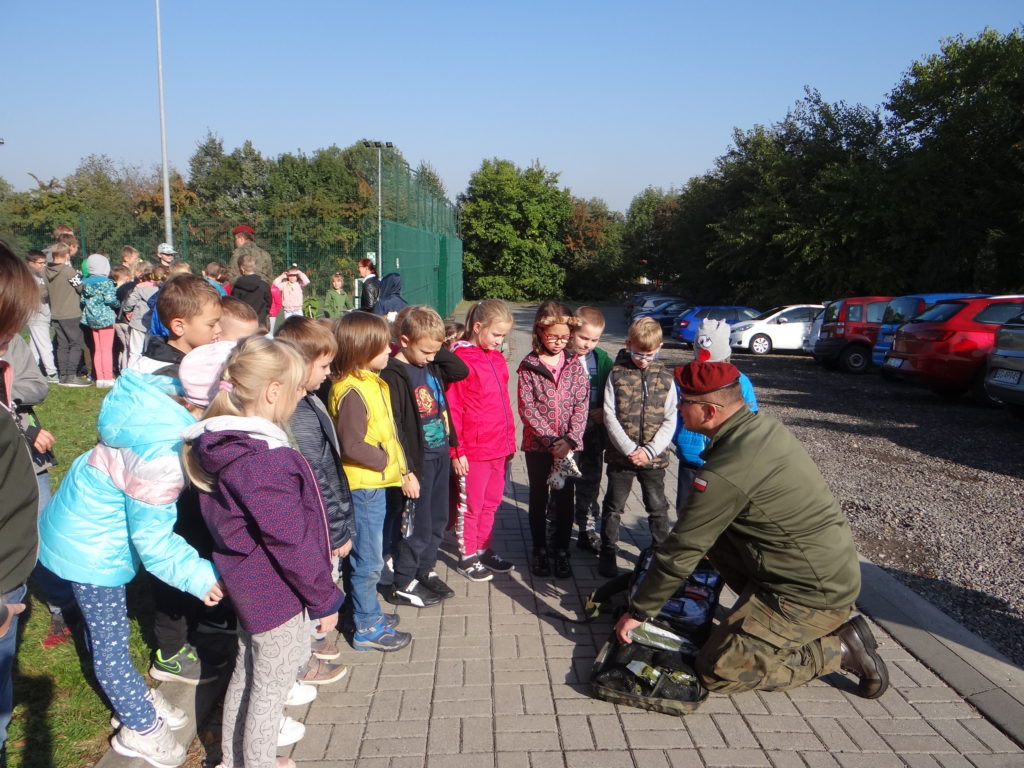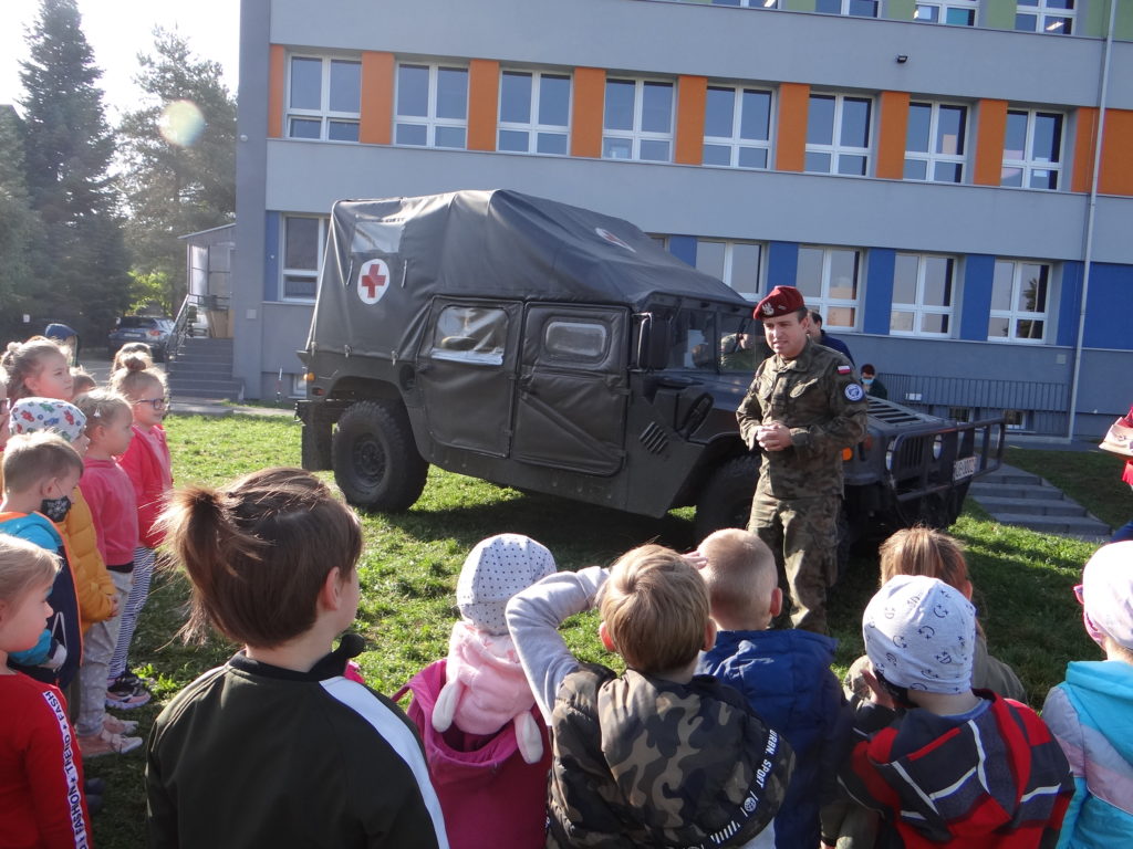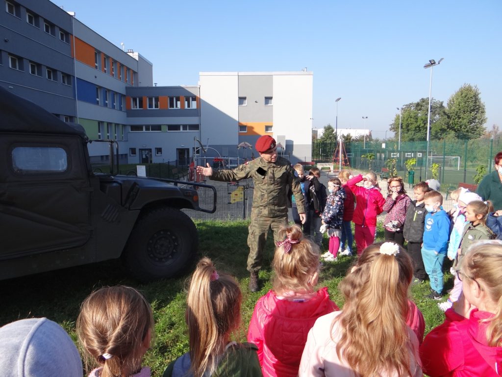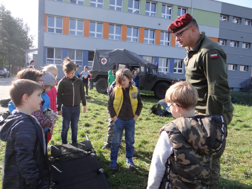 Wojskowy hummer, sprzęt ratowniczy i dużo edukacji. Kontynuujemy cykl „Poznajemy zawody z bliska”. 8 października br. do naszej szkoły przybyli żołnierze z 6 batalionu powietrznodesantowego w Gliwicach. W ramach wizyty, uczniowie mieli okazję zapoznać się ze specyfiką pracy żołnierzy i poznać rolę żołnierzy dla obronności kraju. Uczniowie mogli obejrzeć umundurowanie i sprzęt, usiąść za kierownicą samochodu. W spotkaniu wzięli udział uczniowie kl.1-3 a także starsze klasy, które z wielkim zaciekawieniem dołączyły do nas w czasie przerwy.