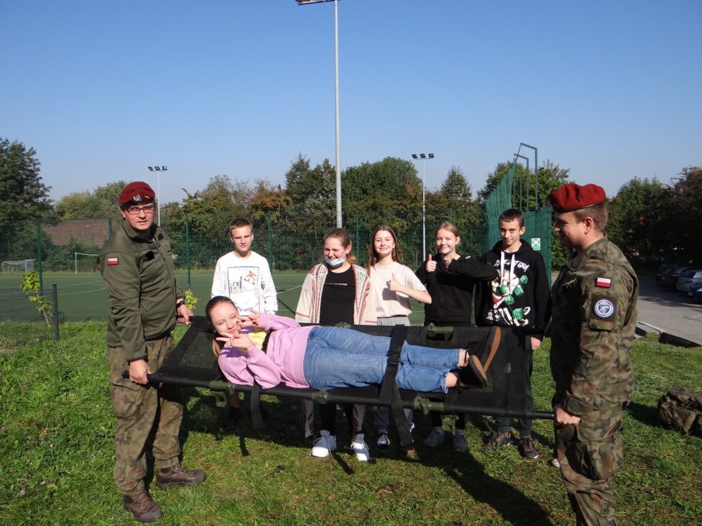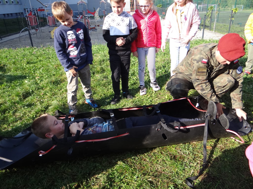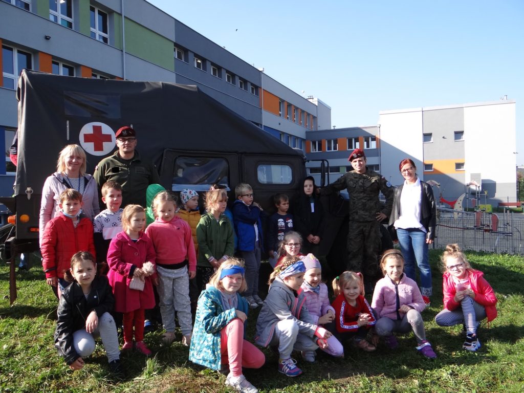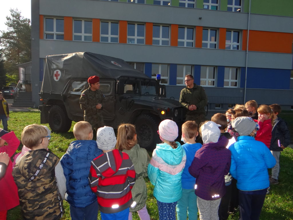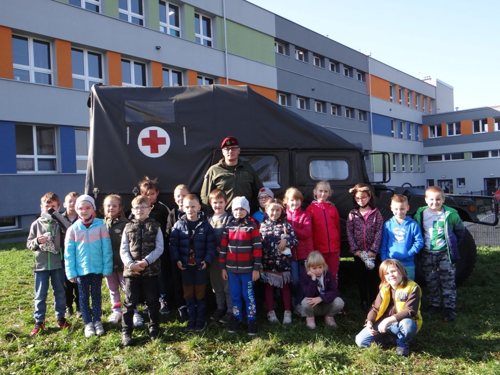 Wojskowy hummer, sprzęt ratowniczy i dużo edukacji. Kontynuujemy cykl „Poznajemy zawody z bliska”. 8 października br. do naszej szkoły przybyli żołnierze z 6 batalionu powietrznodesantowego w Gliwicach. W ramach wizyty, uczniowie mieli okazję zapoznać się ze specyfiką pracy żołnierzy i poznać rolę żołnierzy dla obronności kraju. Uczniowie mogli obejrzeć umundurowanie i sprzęt, usiąść za kierownicą samochodu. W spotkaniu wzięli udział uczniowie kl.1-3 a także starsze klasy, które z wielkim zaciekawieniem dołączyły do nas w czasie przerwy.