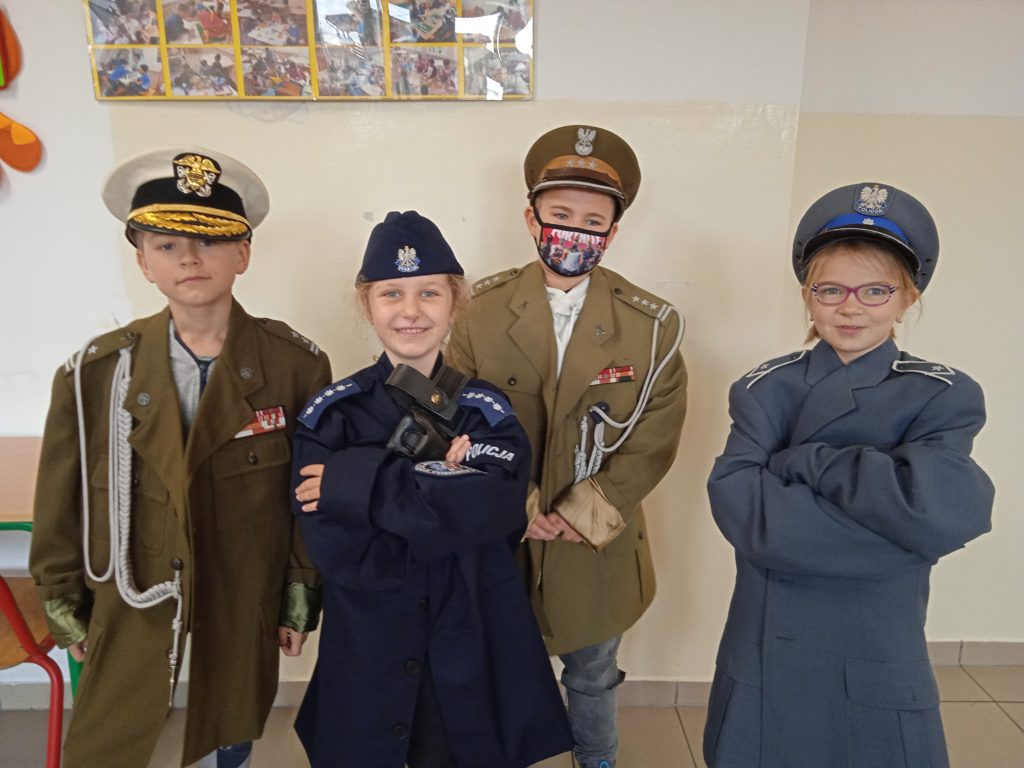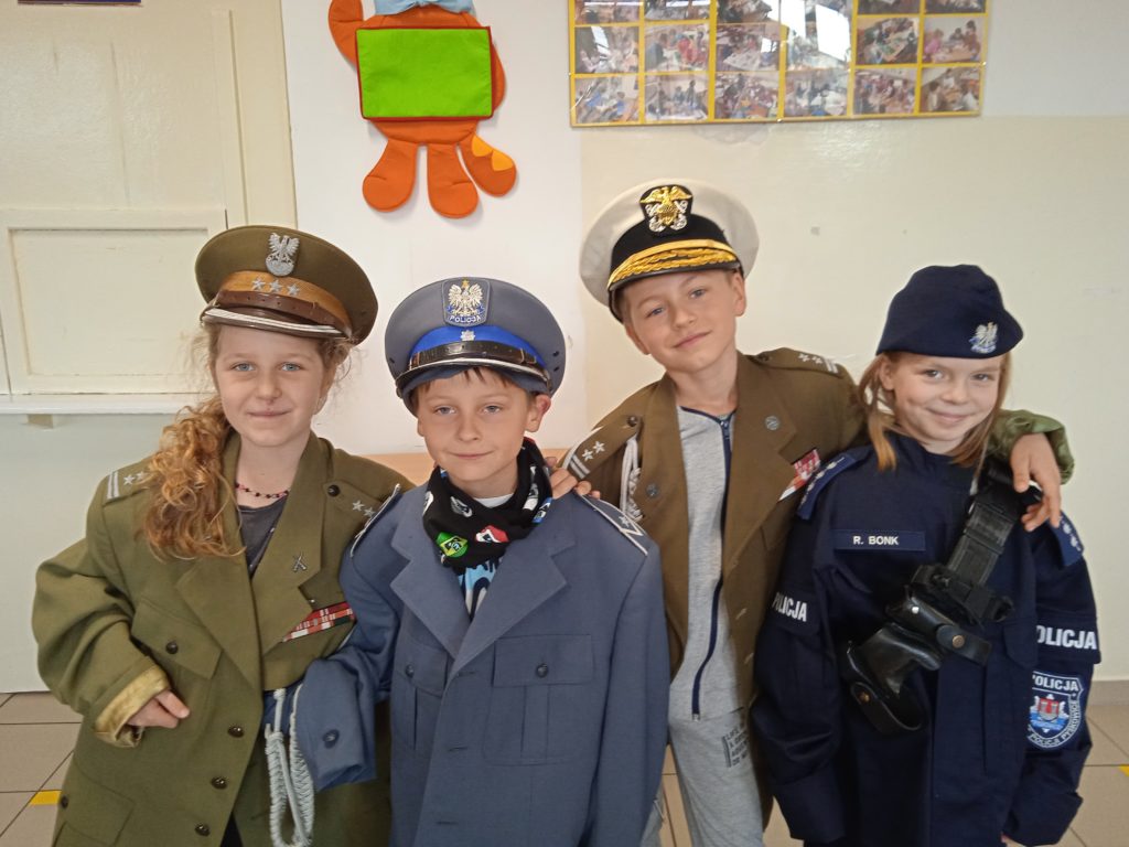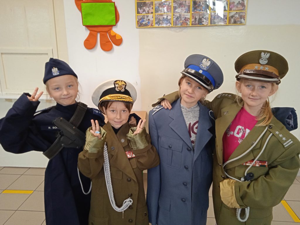 Pażdziernik upłynął nam pod znakiem poznawania zawodów mundurowych. Uczniowie wzięli udział w spotkaniach ze strażakami, policjantami, żołnierzami oraz strażnikami miejskimi. W świetlicy została przygotowana wystawka tematyczna związana z różnego rodzaju umundurowaniem. W ramach podsumowania uczniowie słuchali wierszy i ciekawostek o zawodach, rozwiązywali quizy wiedzy i zagadki. Bawili się w zabawy tematyczne, grali w strażackie memory i mogli przymierzyć wybrane stroje. Dziękuję wszystkim, którzy sporzyjają naszym inicjatywom: @Teatr Miejski za wypożyczenie mundurów, @Robert Bonk za mundur, @Sklep Korab za manekiny.