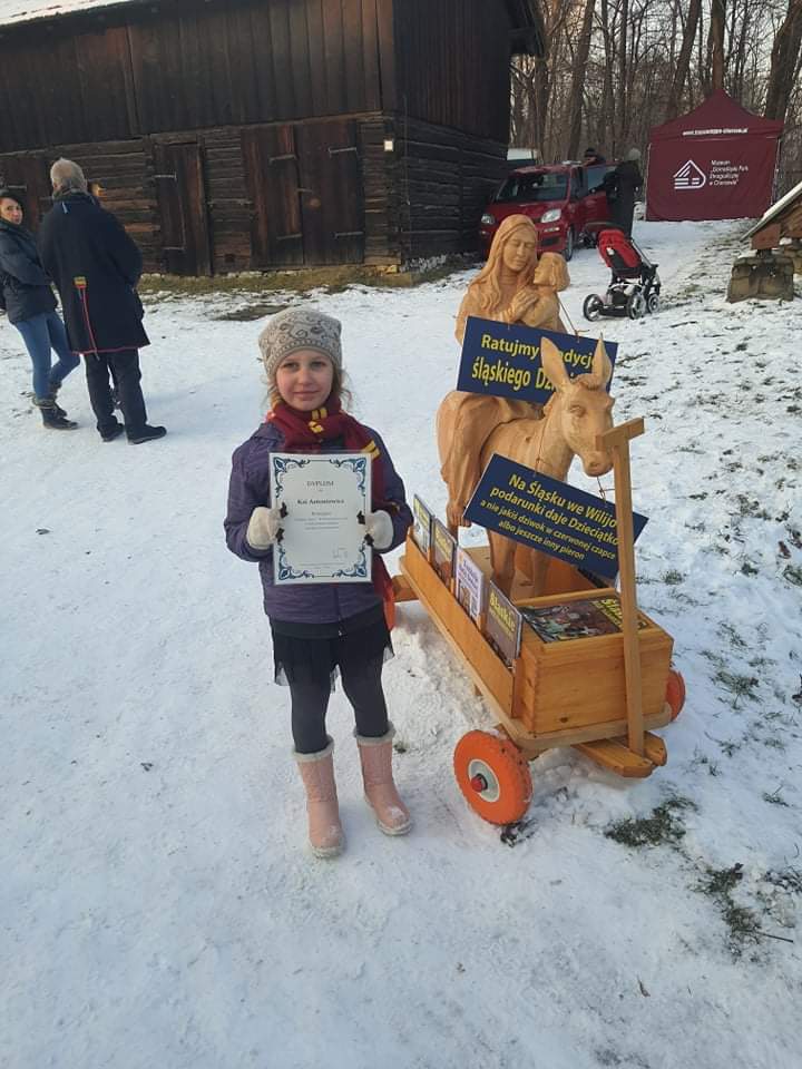 Pasmo sukcesów trwa! Uczennica klasy 2 Kaja Antoniewicz zdobyła 3 miejsce w Ogólnopolskim Konkursie Plastycznym „Szopka bożonarodzeniowa” .Konkurs zorganizowało Muzeum „Górnośląski Park Etnograficzny” w Chorzowie. Gratulujemy Kai i życzymy dalszych sukcesów:)