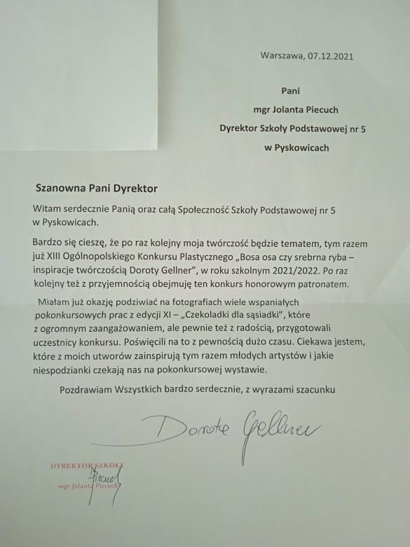 Zwróciliśmy się do samej autorki z prośbą o objęcie honorowym patronatem. Właśnie otrzymaliśmy informację, że Pani Dorota Gellner objęła konkurs swoim honorowym patronatem!