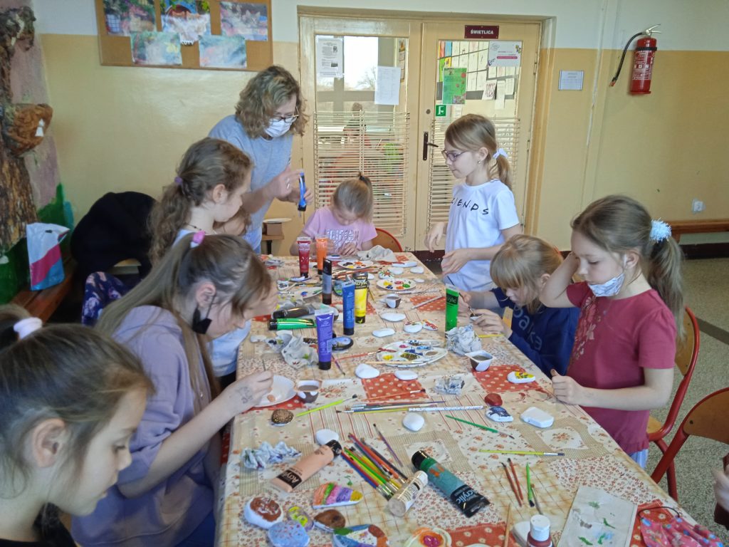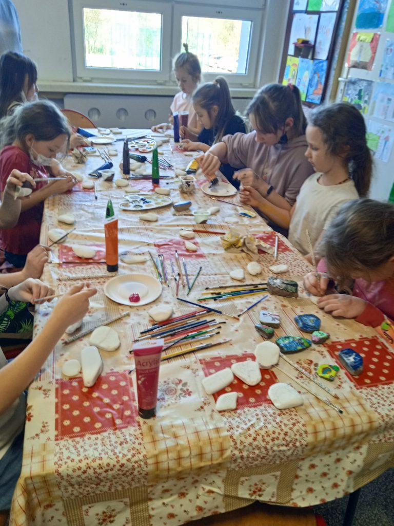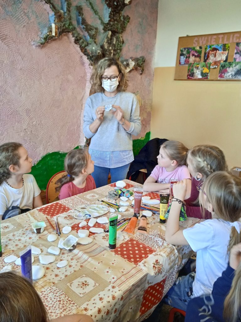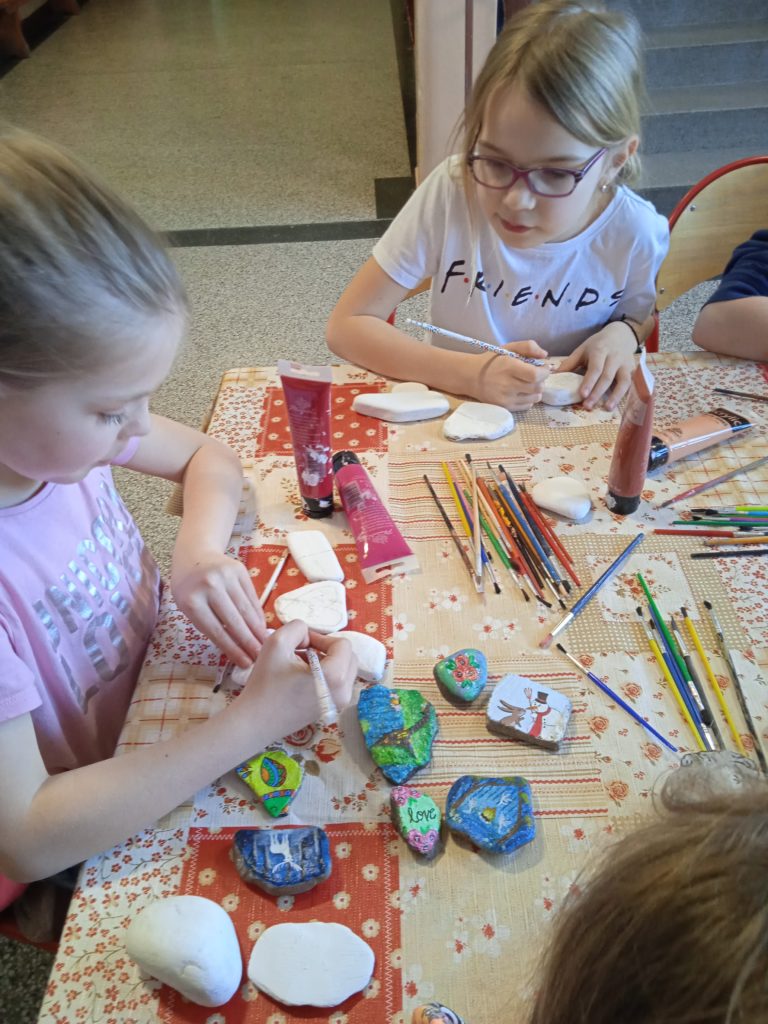 1 marca 2022r. gościliśmy w świetlicy Panią Darię Miniorczyk, która poprowadziła dla nas warsztaty z malowania kamieni. Jest to jedna z nowinek, zyskujących sobie ogromną popularność. Malowanie kamieni oferuje możliwość obcowania ze sztuką i przeżywania wspaniałych chwil, będąc tylko ze sobą, swoimi myślami i talentami artystycznymi. Z kamyczkami związana jest możliwość dalszej zabawy. Do malowania kamyczków używamy farb akrylowych. Na odwrocie kamyk oznaczamy logiem Facebooka i nazwa grupy #kamyczki. Należy również wpisać kod pocztowy miasta, w którym kamyk powstał. Całość zabezpieczamy lakierem akrylowym. Tak przygotowany kamyczek jest już właściwie gotowy na swoją podróż. Można następnie pozostawić go gdzieś w przestrzeni miejskiej. Kiedy znajdziecie kamień , zróbcie zdjęcie kamyczka, który znaleźliście. Następnie dodajcie na grupie post wraz ze zdjęciem swojego znaleziska. W poście należy również umieścić kod pocztowy z kamienia. To ułatwi autorowi odnalezienie swojego dzieła na stronie. Nasi uczniowie bardzo chętnie przystąpili do malowania, czy kamyczki znajdą się w przestrzeni miejskiej? Warto wytężyć oko w czasie wiosennych spacerów. @Daria Miniorczyk dziękujemy za spotkanie:)