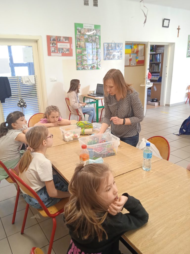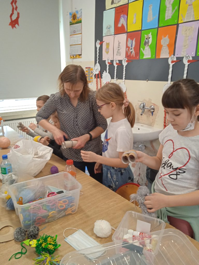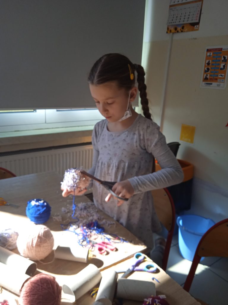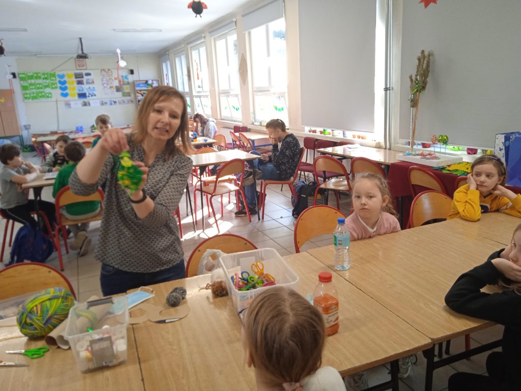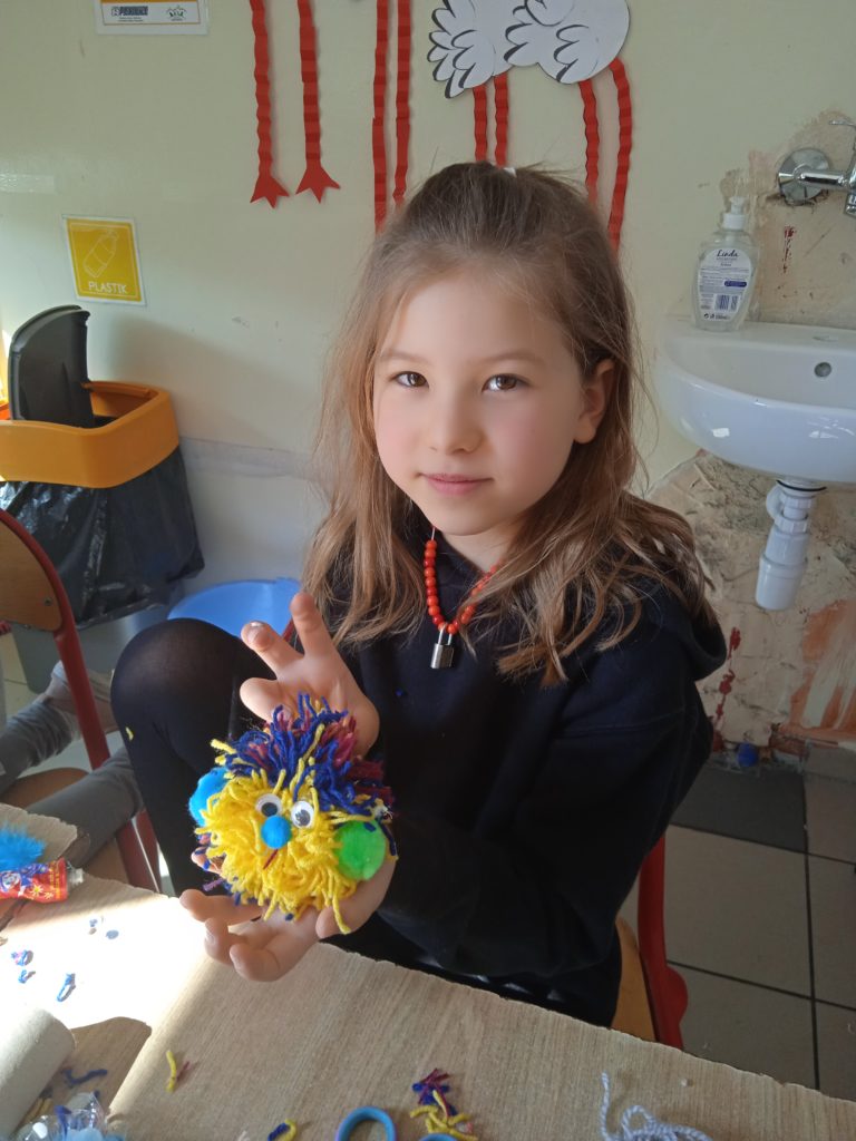 Za oknami wiosna, nasi uczniowie z wielką ochotą nabywają nowe umiejętności i zdolności. 24.03.2022 r. gościliśmy Panią Jolantę Mrowińską, która wprowadziła naszych podopiecznych w kolorowy świat wełny. Pani Jolanta zaprezentowała, jak wykonywać kolorowe pomponiki, które można wykonać do wykonania misia, laleczki, ptaka albo przytulanki. Dziękujemy Pani Joli za wizytę i zapraszamy na kolejne:)