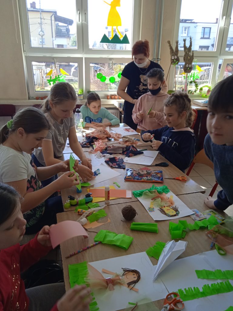 „Leci pliszka spod kamyczka:- Jak się macie dzieci! Już przybyła wiosna miła, już słoneczko świeci!” Po części czytelniczej uczniowie wykonali wspaniałe prace ukazujące wizerunek Pani Wiosny. Prace zdobią witryny @Miejskiej Biblioteki Publicznej.