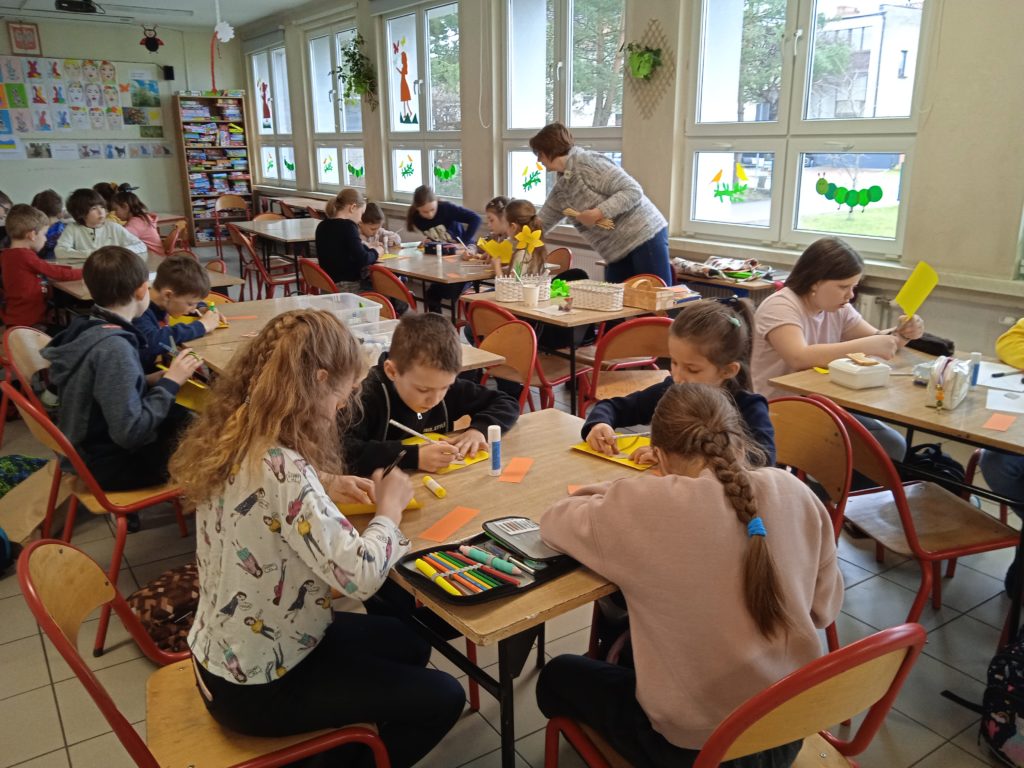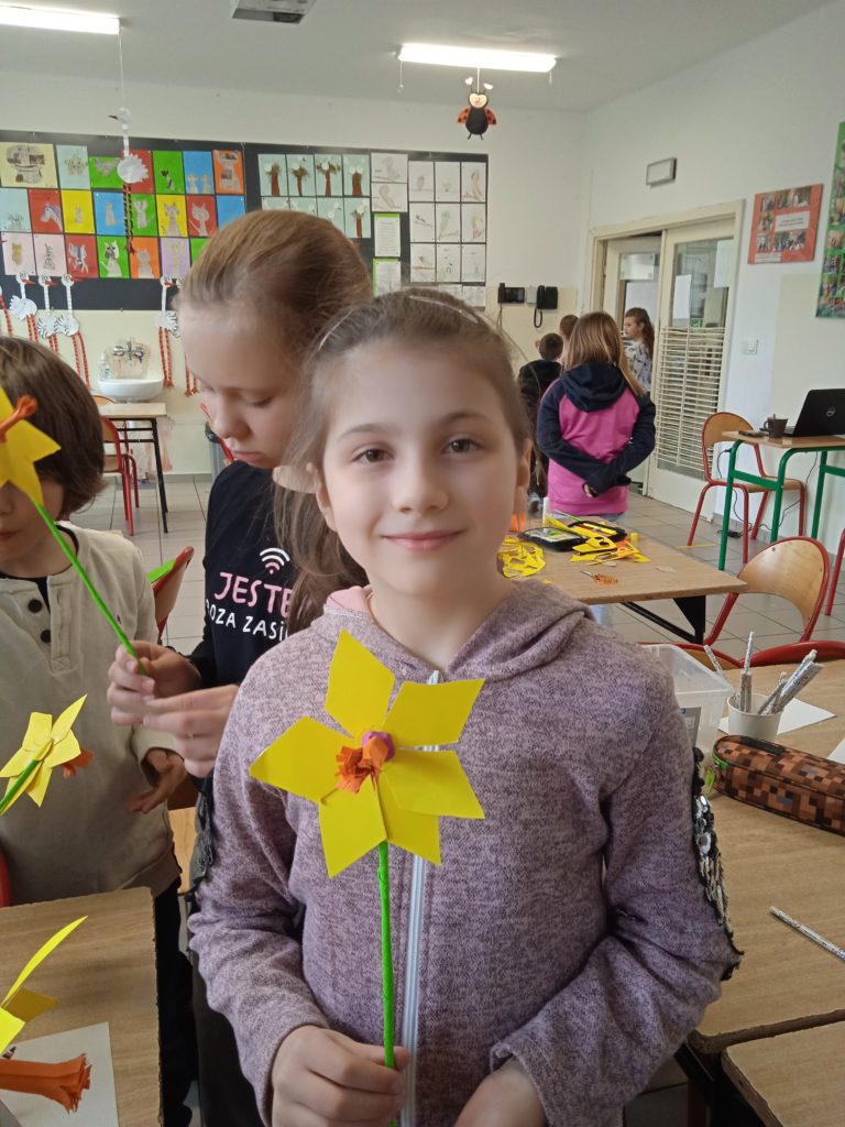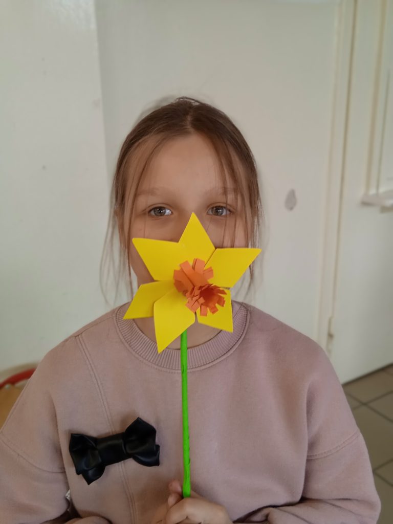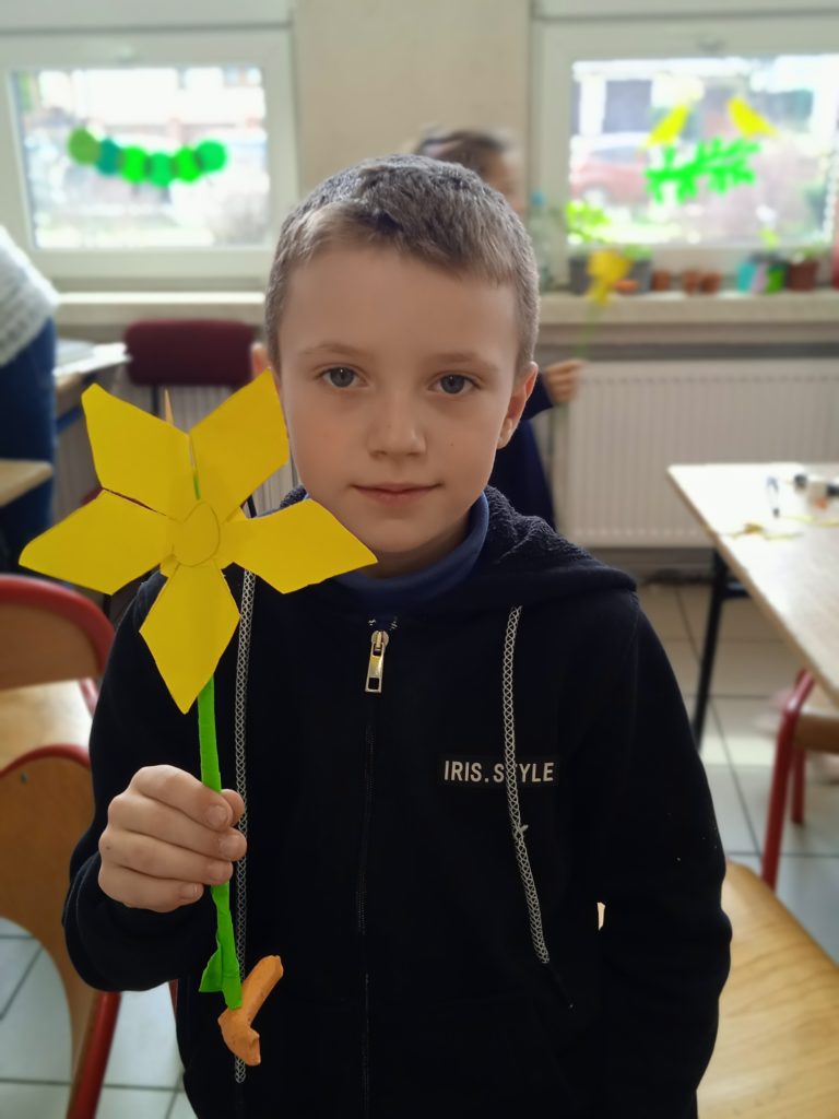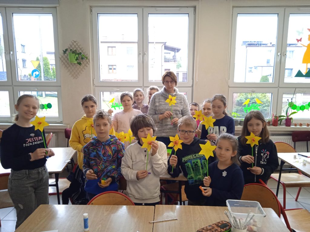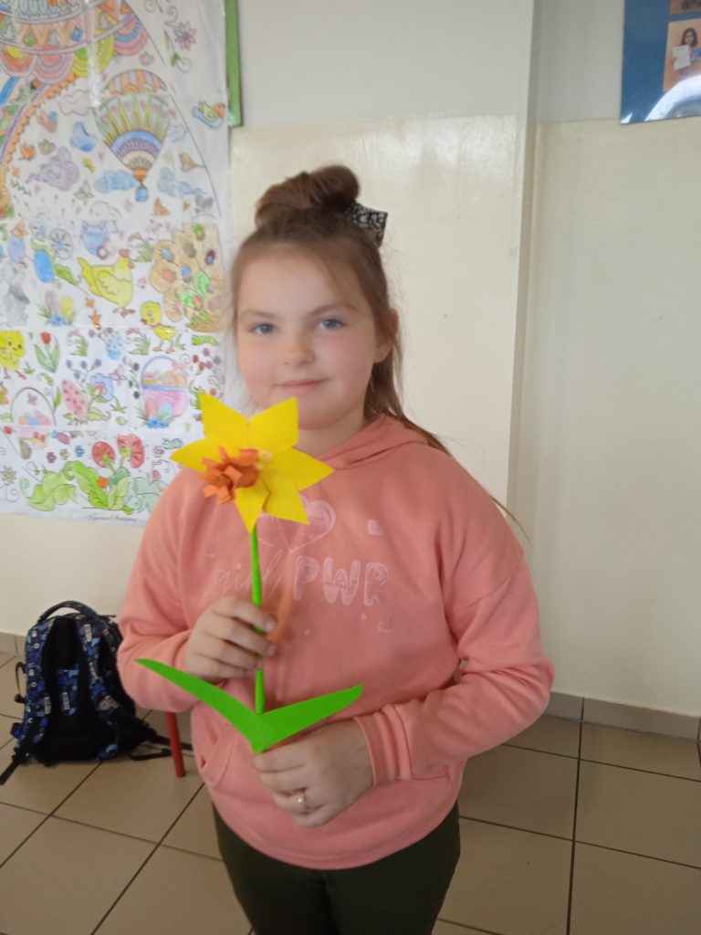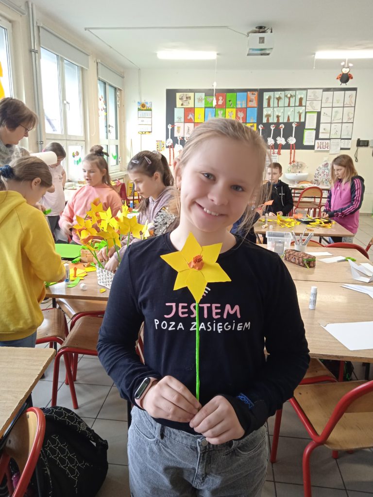 Symbolika żonkila jest bardzo zróżnicowana. Żółte, białe i pomarańczowe kwiaty kojarzą się z radością, szczęściem i odrodzeniem. I tak można je odczytywać, bowiem pełen barw narcyz uznany został przez znawców roślin za zwiastun dobrobytu, narodzin oraz powodzenia w każdej dziedzinie życia. W czasie dzisiejszego spotkania z @Miejska Biblioteka Publiczna uczniowie wykonali przestrzenne żonkile, które zdobią witryny biblioteki.