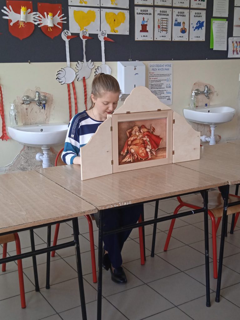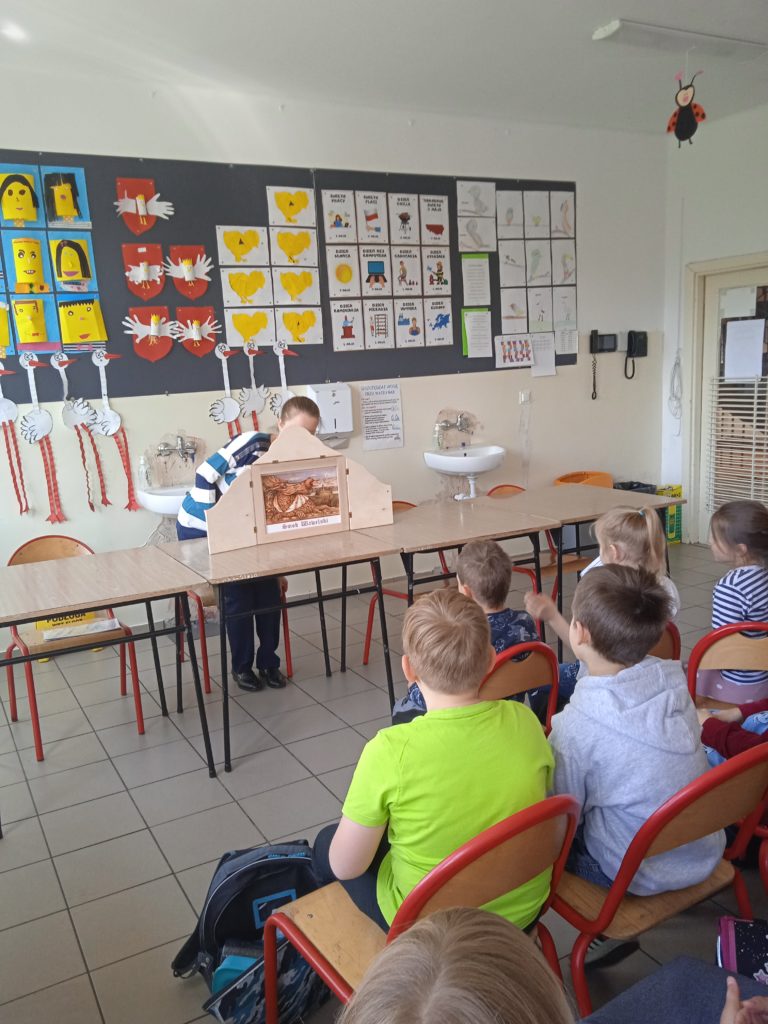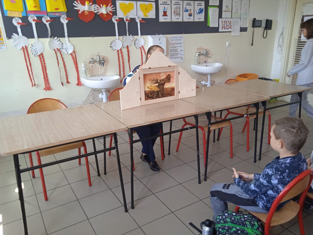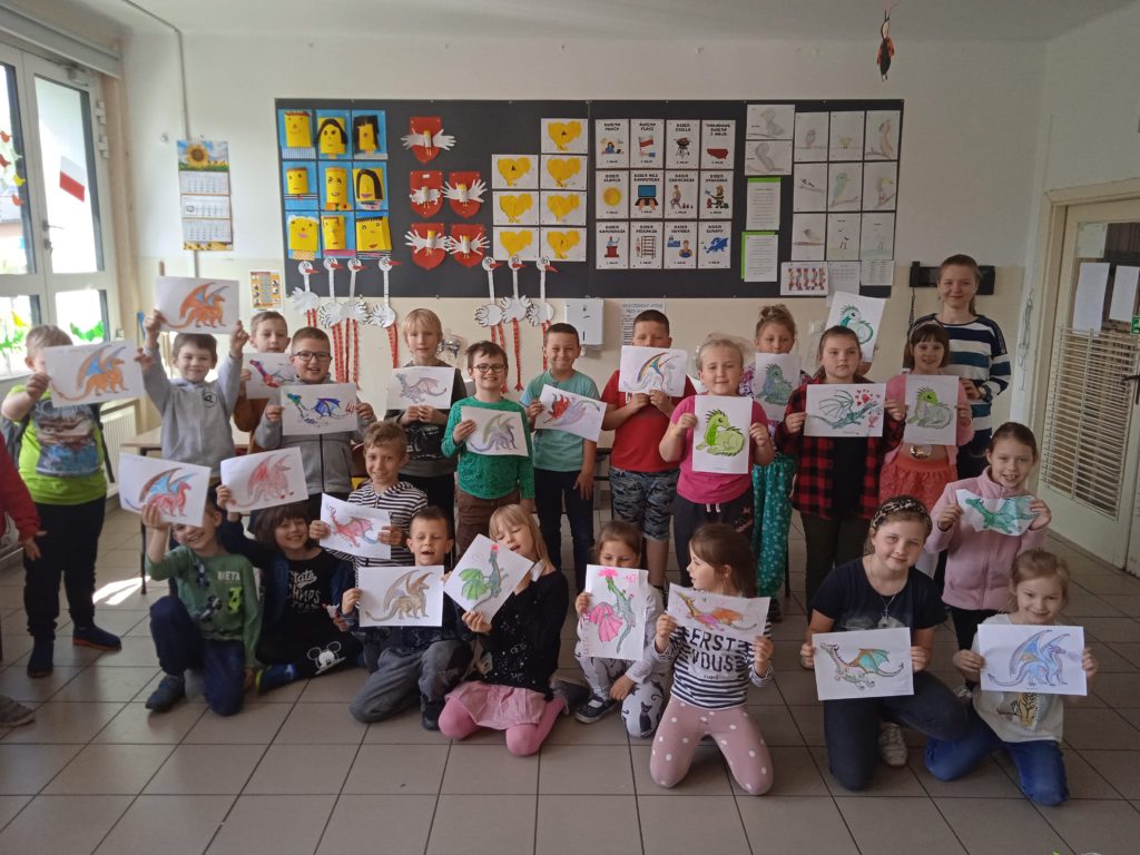 Tydzień Zawodów Ludzi Teatru zakończyliśmy wizytą Pani @Dominika Panek z Biblioteka w Toszku , która przybliżyła uczniom inny rodzaj teatru. Kamishibai to teatrzyk obrazkowy ukryty w „drewnianej skrzynce”pochodzący z Japonii. Z zewnątrz jest niepozorny. Zamknięty przypomina trochę walizkę. Lecz wkrótce po otworzeniu tajemniczych drzwiczek cała gromadka dzieci zamiera jak zahipnotyzowana. Kamishibai służy do prezentowania widzom ilustracji, które tworzą fabułę. Zbiór obrazków (umożliwiających przedstawienie całej opowieści), ułożonych jeden po drugim, umieszczany jest w butai – drewnianej skrzynce. Na odwrocie każdej ilustracji znajduje się fragment tekstu czytanego głośno przez narratora siedzącego przy teatrzyku. Tekst do obrazka pokazywanego w danym momencie, jest wydrukowany z tyłu obrazka go poprzedzającego i jest widoczny jedynie dla czytającego. Dzieci natomiast oglądają piękne ilustracje zmieniające się jak slajdy. Ich prezentowaniu towarzyszy wyjątkowy nastrój, stworzony za sprawą teatrzyku kamishibai. Po poznaniu teatrzyku uczniowie odpowiadali na pytania gościa oraz wzięli udział w warsztatach tematycznych o smokach ![]()
