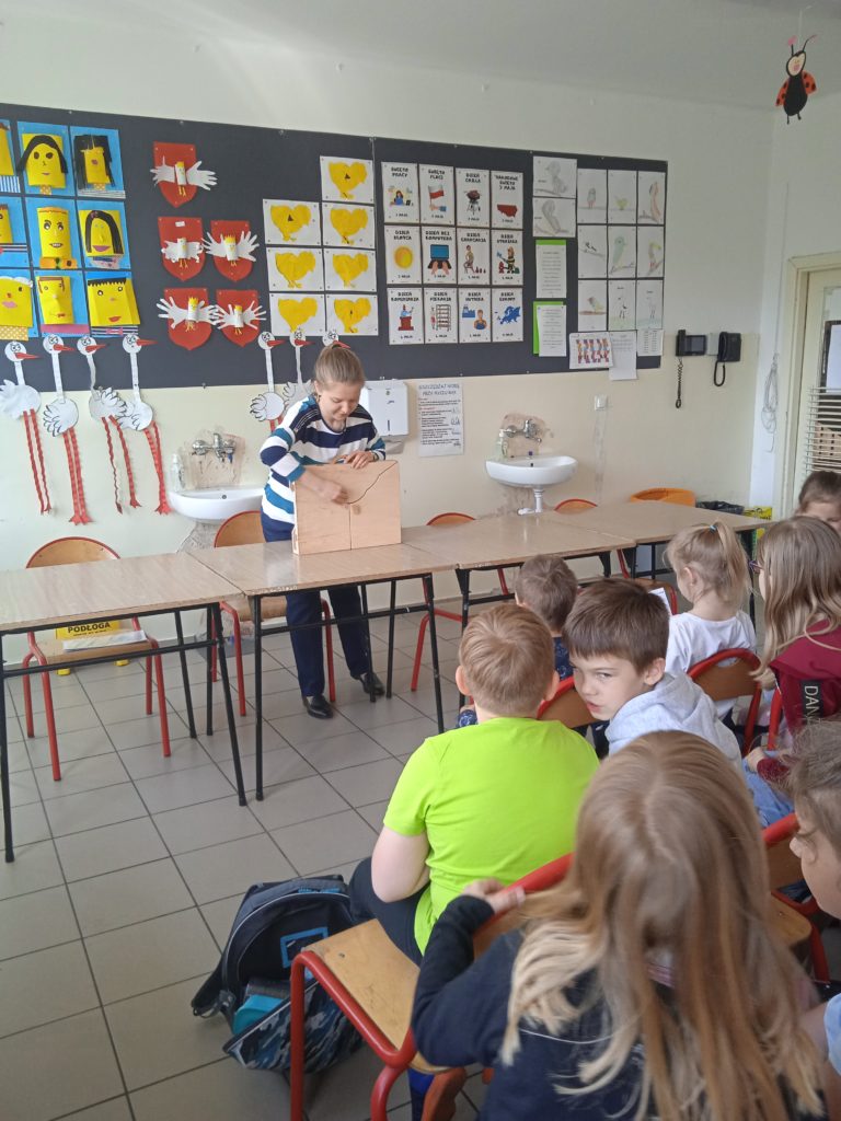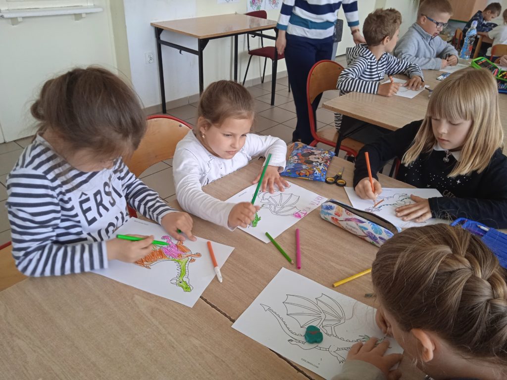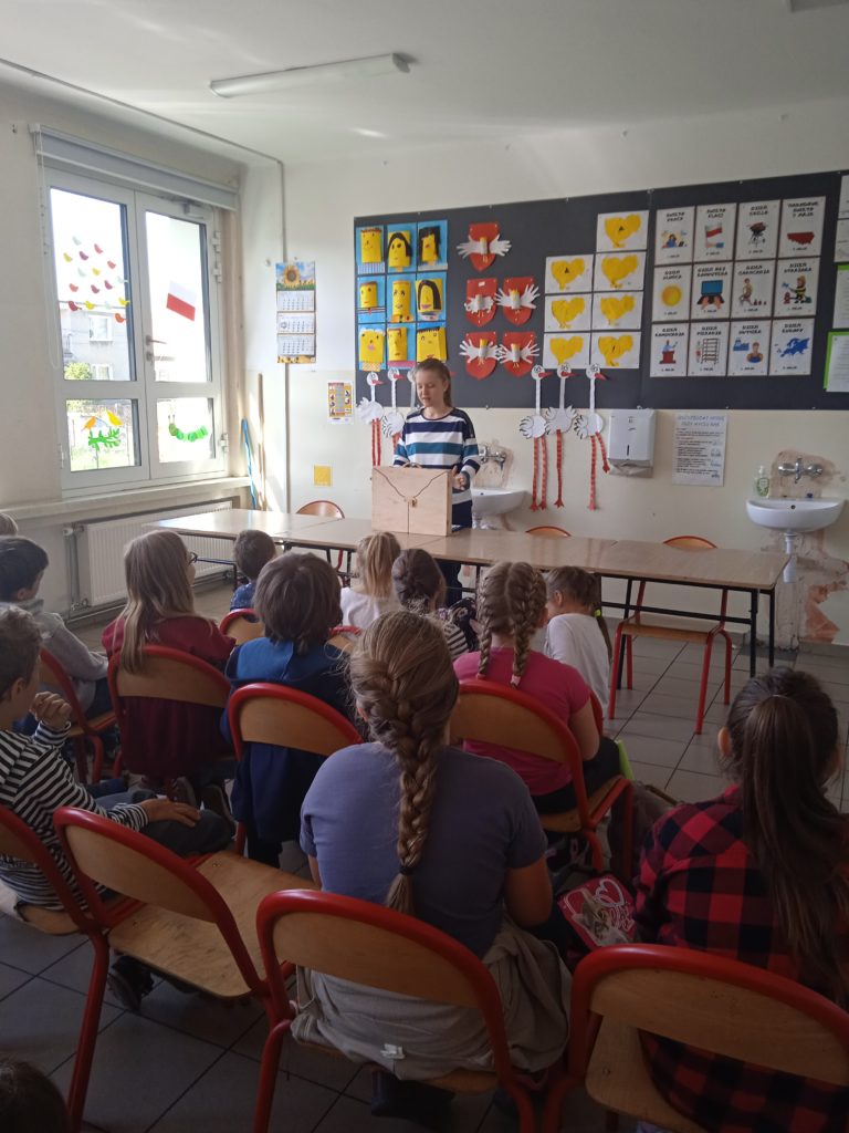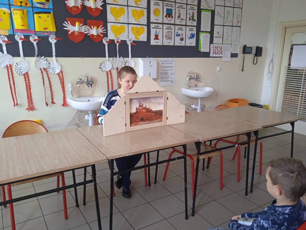 Tydzień Zawodów Ludzi Teatru zakończyliśmy wizytą Pani @Dominika Panek z Biblioteka w Toszku , która przybliżyła uczniom inny rodzaj teatru. Kamishibai to teatrzyk obrazkowy ukryty w „drewnianej skrzynce”pochodzący z Japonii. Z zewnątrz jest niepozorny. Zamknięty przypomina trochę walizkę. Lecz wkrótce po otworzeniu tajemniczych drzwiczek cała gromadka dzieci zamiera jak zahipnotyzowana. Kamishibai służy do prezentowania widzom ilustracji, które tworzą fabułę. Zbiór obrazków (umożliwiających przedstawienie całej opowieści), ułożonych jeden po drugim, umieszczany jest w butai – drewnianej skrzynce. Na odwrocie każdej ilustracji znajduje się fragment tekstu czytanego głośno przez narratora siedzącego przy teatrzyku. Tekst do obrazka pokazywanego w danym momencie, jest wydrukowany z tyłu obrazka go poprzedzającego i jest widoczny jedynie dla czytającego. Dzieci natomiast oglądają piękne ilustracje zmieniające się jak slajdy. Ich prezentowaniu towarzyszy wyjątkowy nastrój, stworzony za sprawą teatrzyku kamishibai. Po poznaniu teatrzyku uczniowie odpowiadali na pytania gościa oraz wzięli udział w warsztatach tematycznych o smokach ![]()