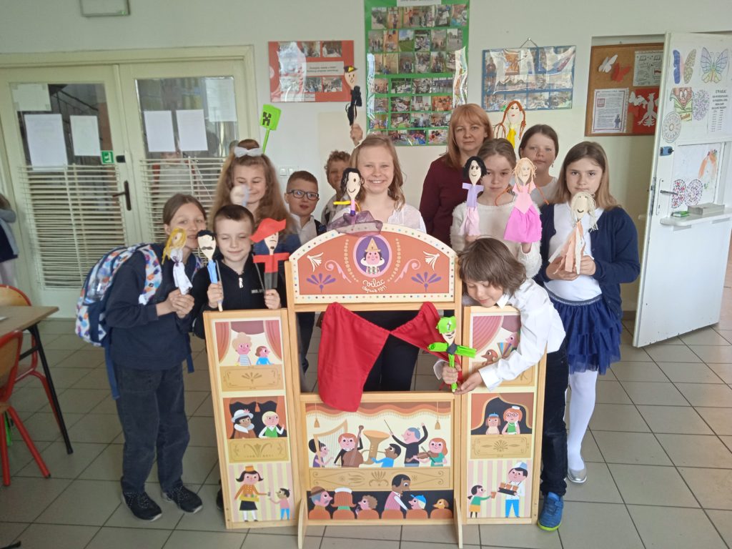 „Teatr to miejsce jest niezwykłe, zaczarowana każda chwila, kurtyna w górę się unosili przedstawienie rozpoczyna…” „Teatr” J. Koczanowska. Z okazji organizowanego w świetlicy Tygodnia Zawodów Ludzi Teatru odwiedziła nas Pani Ewa, bibliotekarka, z oddziału dla dzieci Miejska Biblioteka Publiczna w Pyskowicach, która wykonała z dziećmi kukiełki.