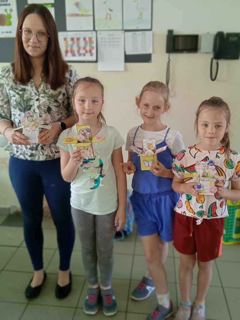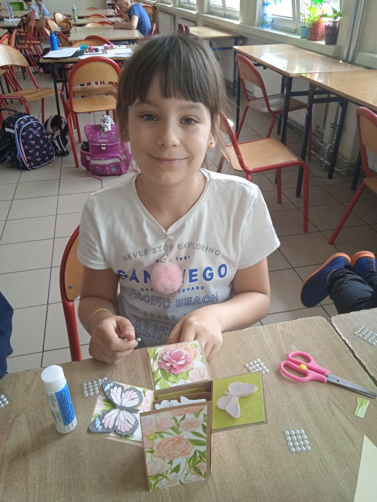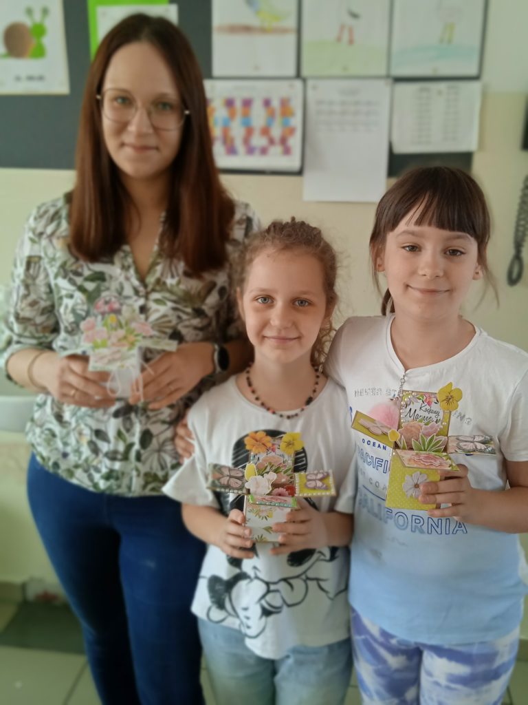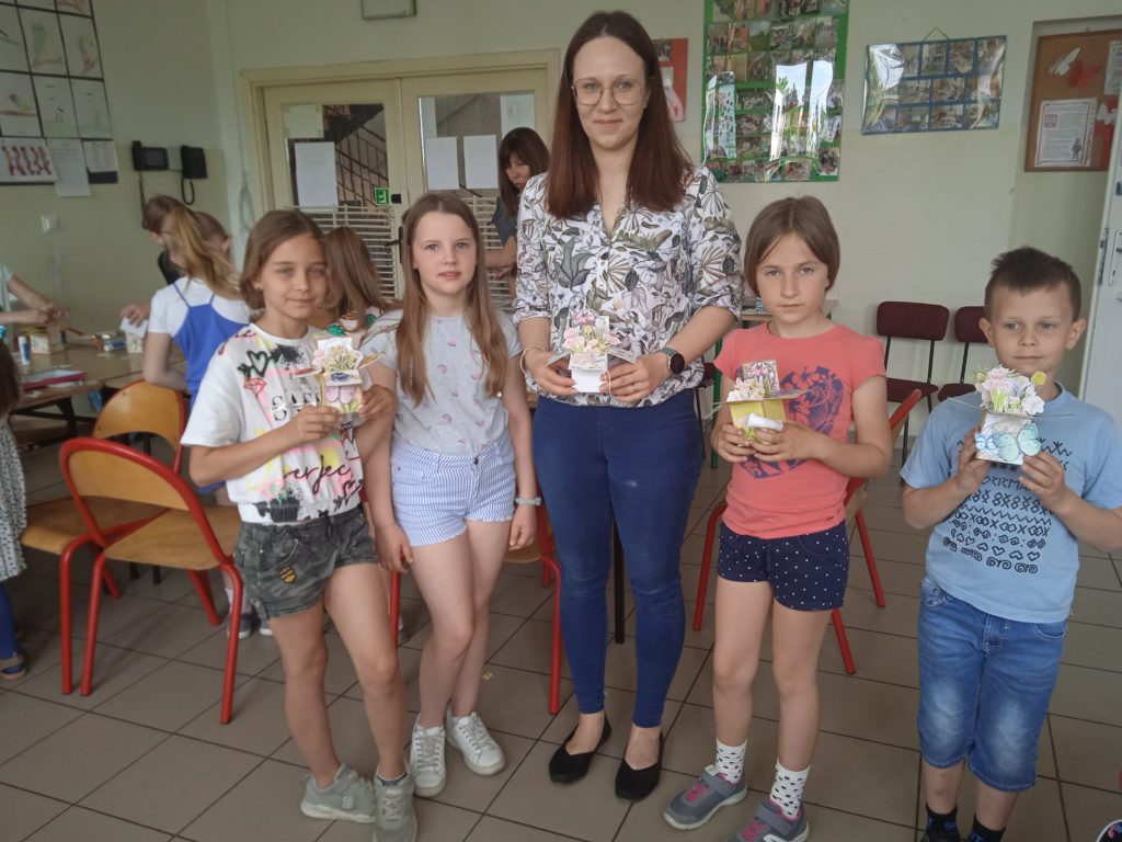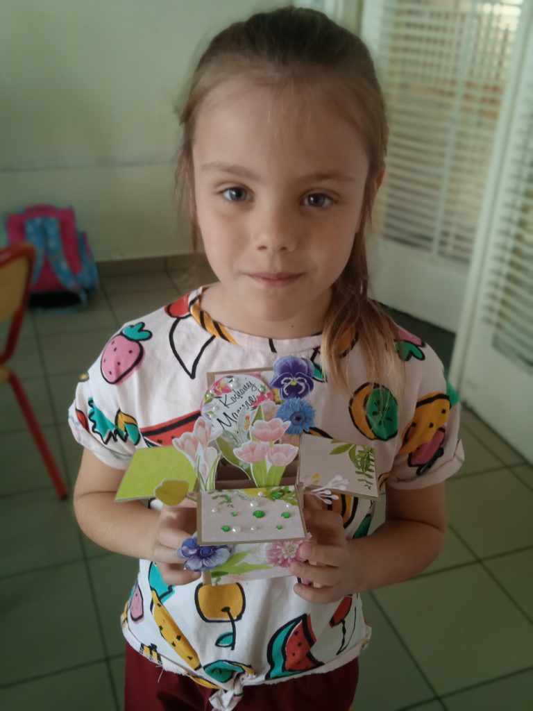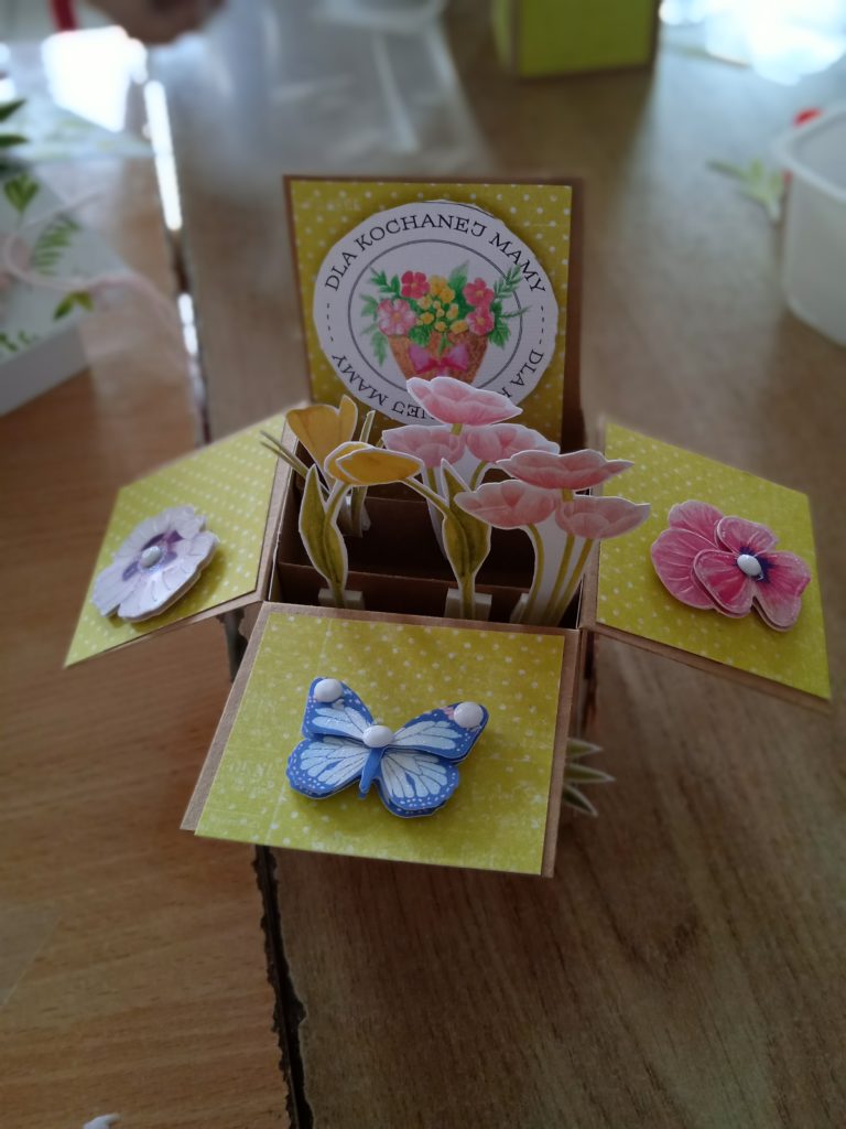 wyjątkowej kartki z trójwymiarowymi motywami kwiatów „pop up”. Zachwycająca papierowa inżynieria uszczęśliwiła naszych małych twórców,którzy wykonali prezenty z okazji Dnia Matki.