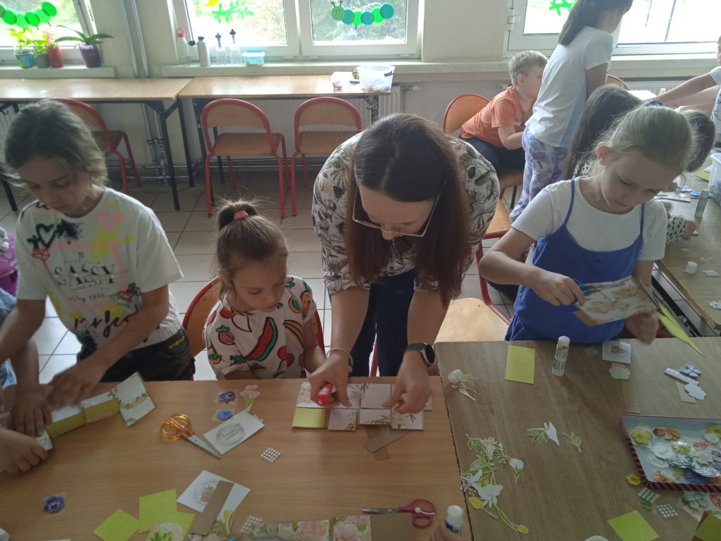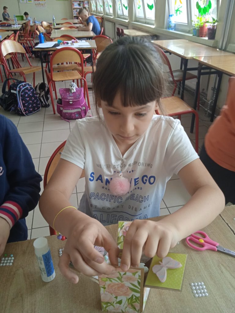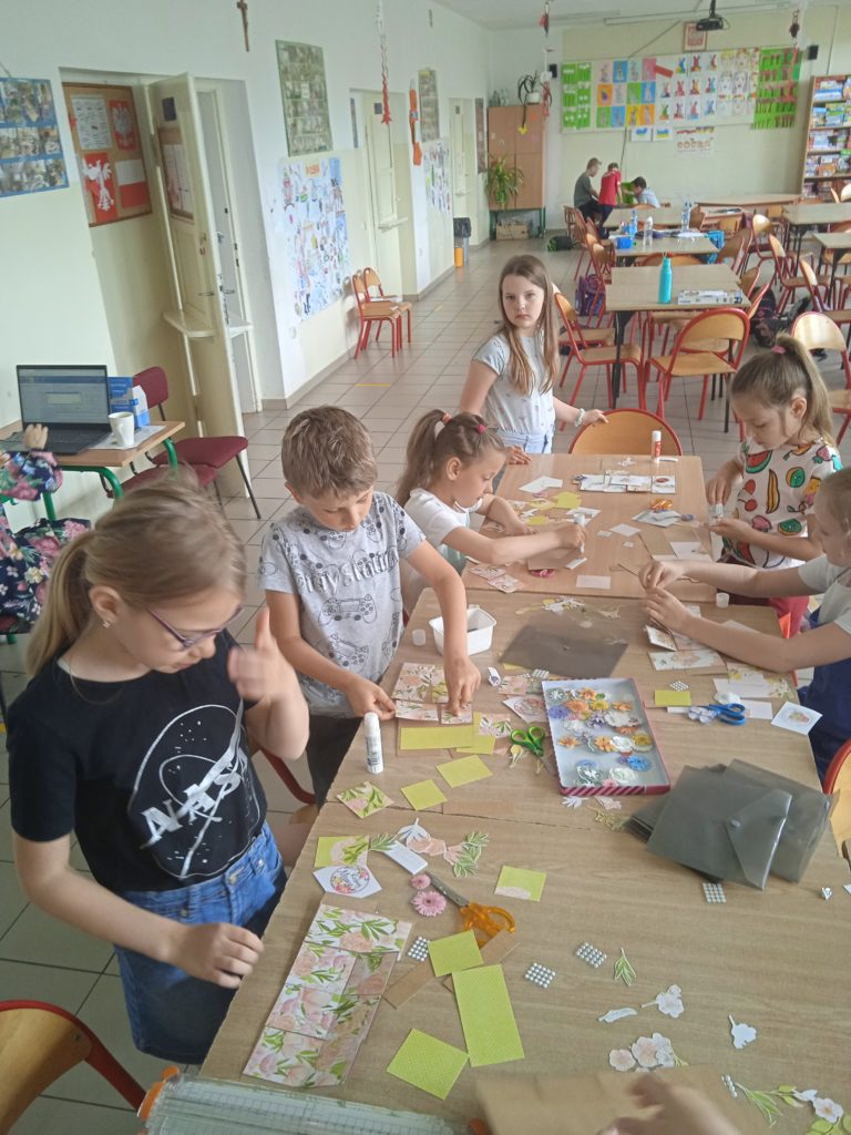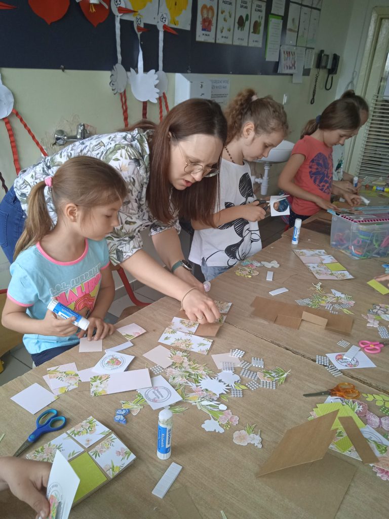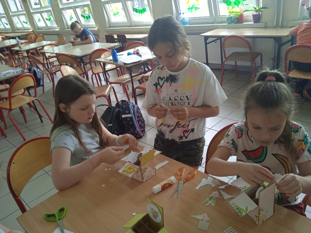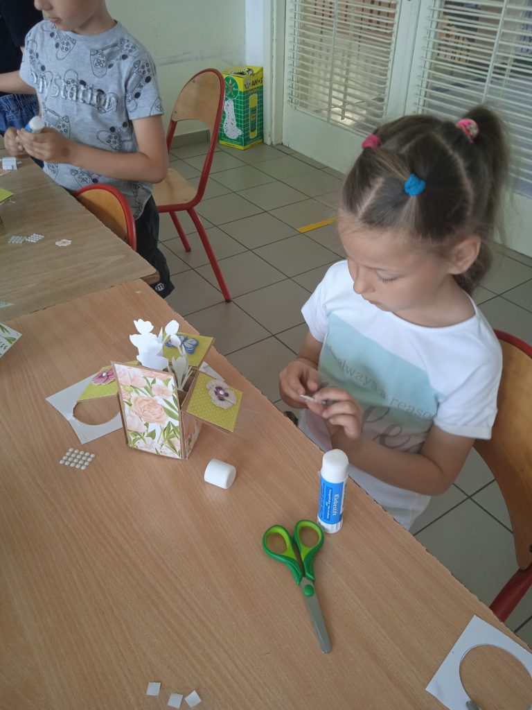 wyjątkowej kartki z trójwymiarowymi motywami kwiatów „pop up”. Zachwycająca papierowa inżynieria uszczęśliwiła naszych małych twórców,którzy wykonali prezenty z okazji Dnia Matki.