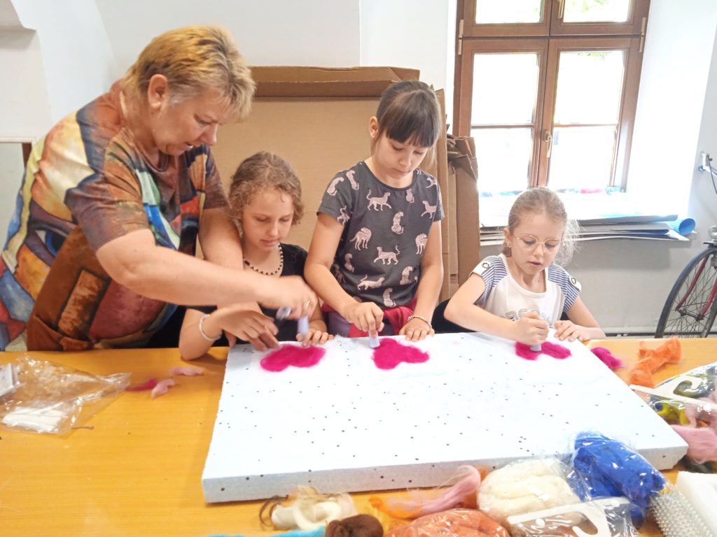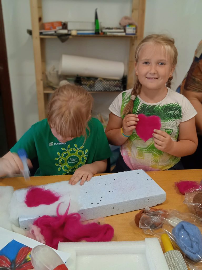 20 maja grupa uczennic z kl.2 wzięła udział w warsztatach z filcowania na sucho w Centrum Wystawiennicze w Pyskowicach. Filcowanie, to wbijanie specjalnej igły w wełnę. Włókna wełny zahaczają się o zadziorki i dzięki temu wełna splątuje się ze sobą, a ostatecznie filcuje. Uczennice wykonały przepiękne serca z okazji Dnia Matki.