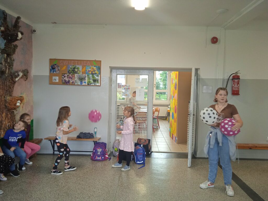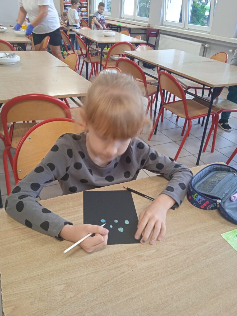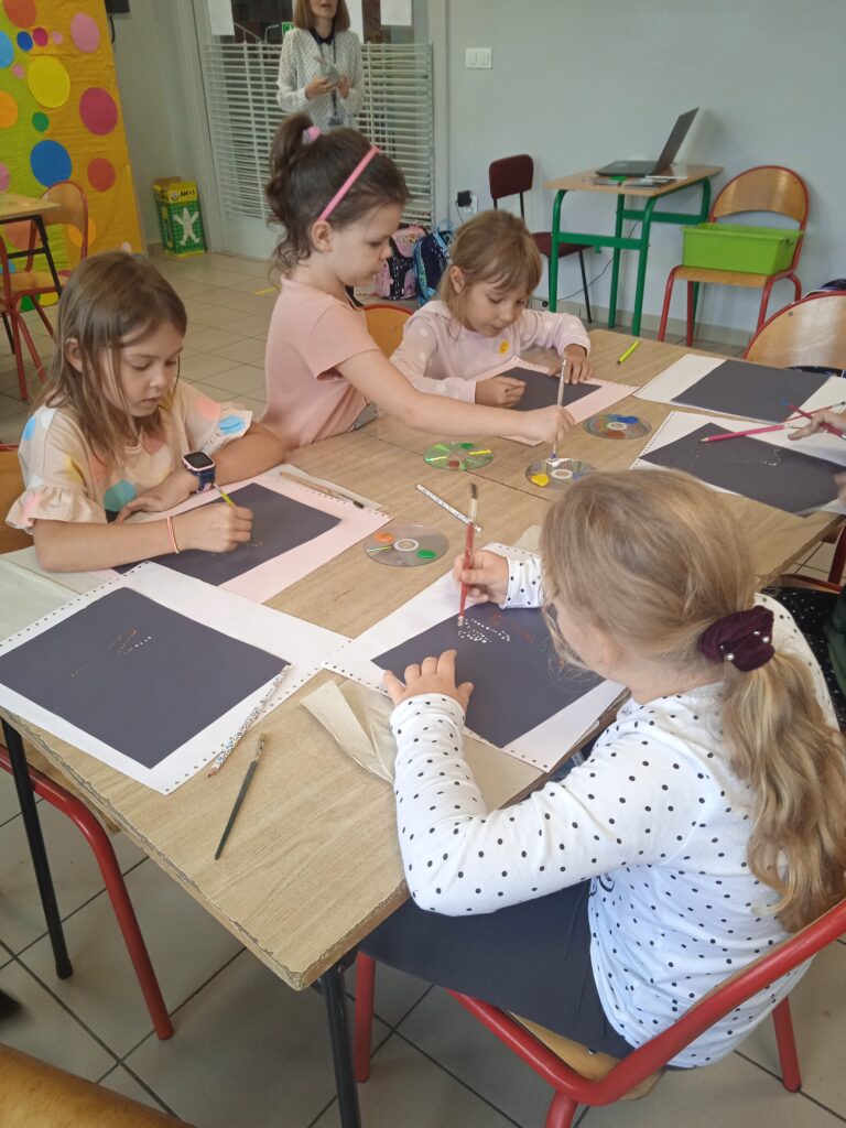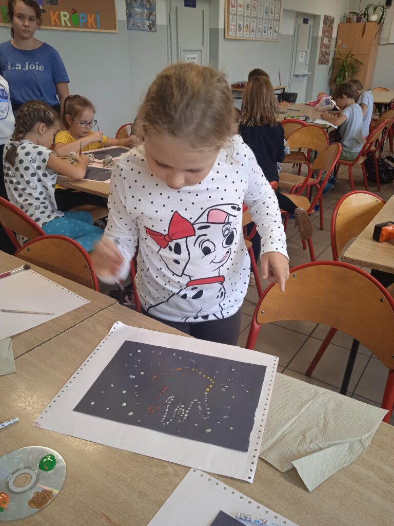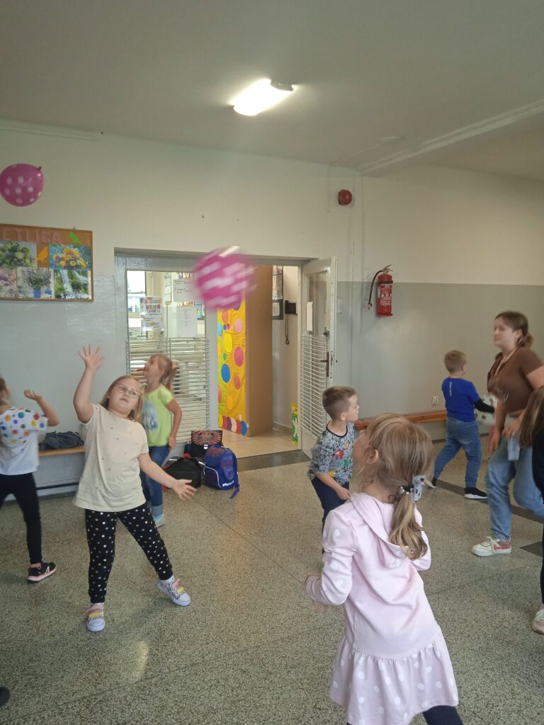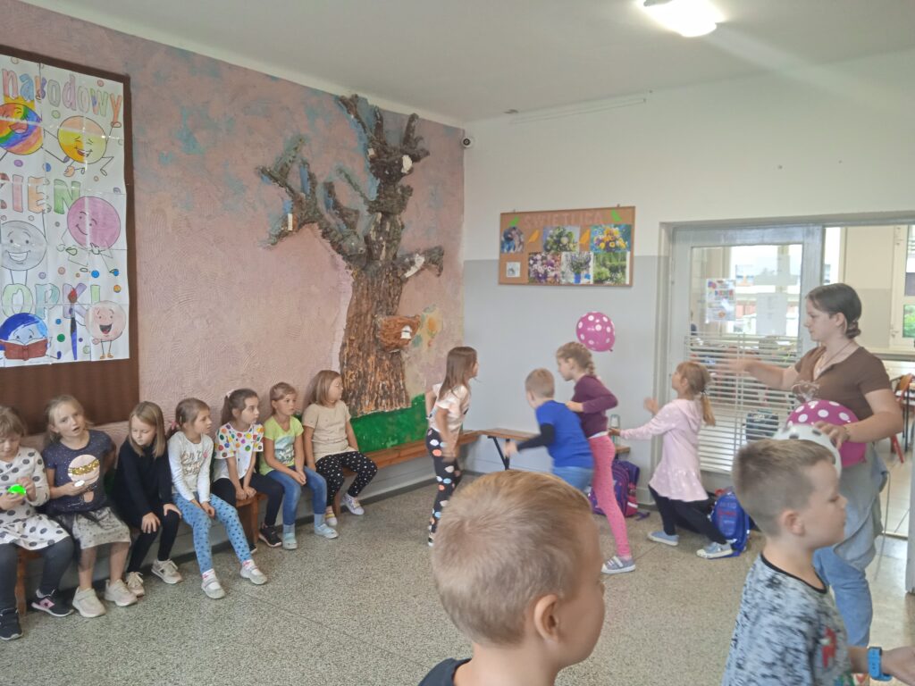 15 września świętowaliśmy w naszej szkole Dzień Kropki. Magia kropki działała wśród najmłodszych uczniów przez cały tydzień. Zaczęliśmy od przeczytania książki Petera Reynolsa „Kropka”. W czasie zajęć uczniowie wykonywali prace plastyczne metodą kropkową, bawili się chustą animacyjną, twisterem, rozwiązywali łamigłówki. Dodatkową atrakcją było stworzenie kropkowej ścianki. Na tle której uczniowie mogli wykonać pamiątkowe zdjęcie. W obchodach tego święta pomogły nam wolontariuszki ze szkolnego koła wolontariatu Mopsik.