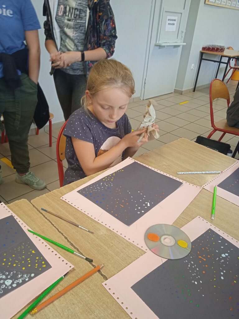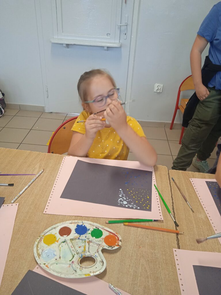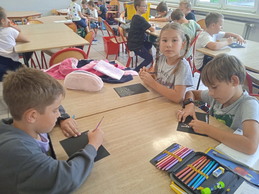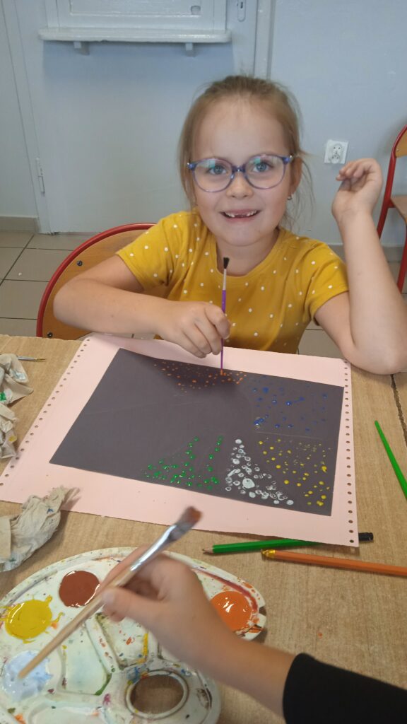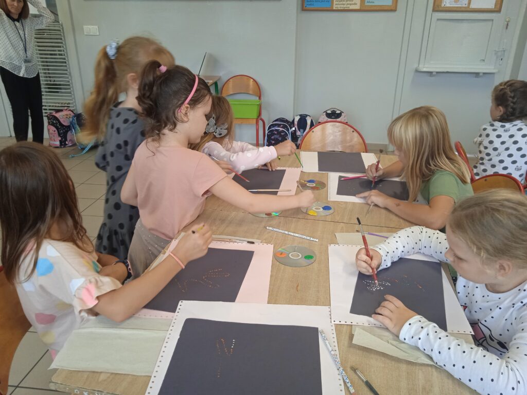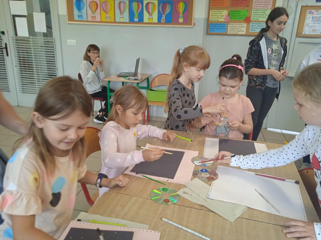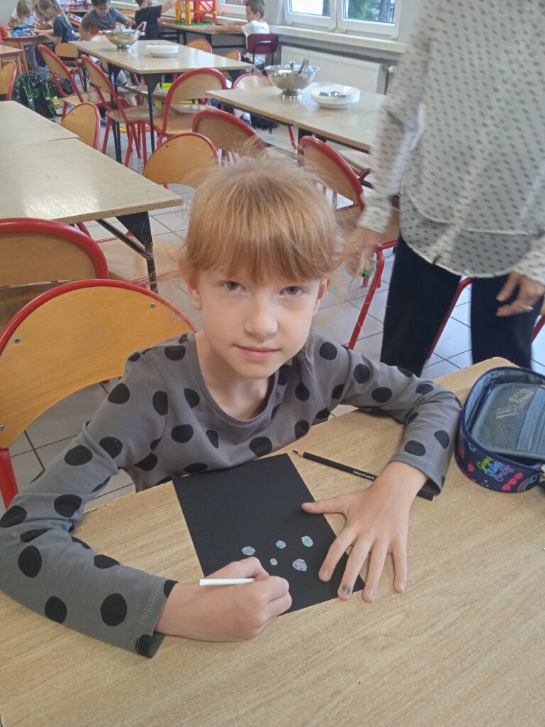 15 września świętowaliśmy w naszej szkole Dzień Kropki. Magia kropki działała wśród najmłodszych uczniów przez cały tydzień. Zaczęliśmy od przeczytania książki Petera Reynolsa „Kropka”. W czasie zajęć uczniowie wykonywali prace plastyczne metodą kropkową, bawili się chustą animacyjną, twisterem, rozwiązywali łamigłówki. Dodatkową atrakcją było stworzenie kropkowej ścianki. Na tle której uczniowie mogli wykonać pamiątkowe zdjęcie. W obchodach tego święta pomogły nam wolontariuszki ze szkolnego koła wolontariatu Mopsik.