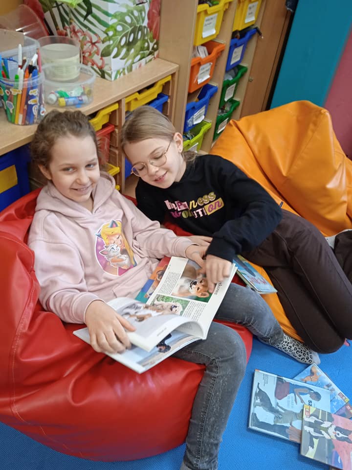 Dzisiejsze zajęcia z @Miejska Biblioteka Publiczna dostarczyły wiele pozytywnych przeżyć naszych uczniom. Uczestnicy spotkania wysłuchali opowiadania „Nelka i piesek Fafik”. Następnie wypisywali cechy charakterystyczne pieska, wyklejając również jego podobiznę. Pozostały czas dopełniły czytając ciekawostki i zasady pielęgnacji różnych ras piesków czytając dostępną literaturę.