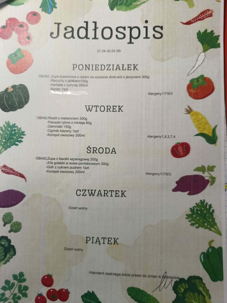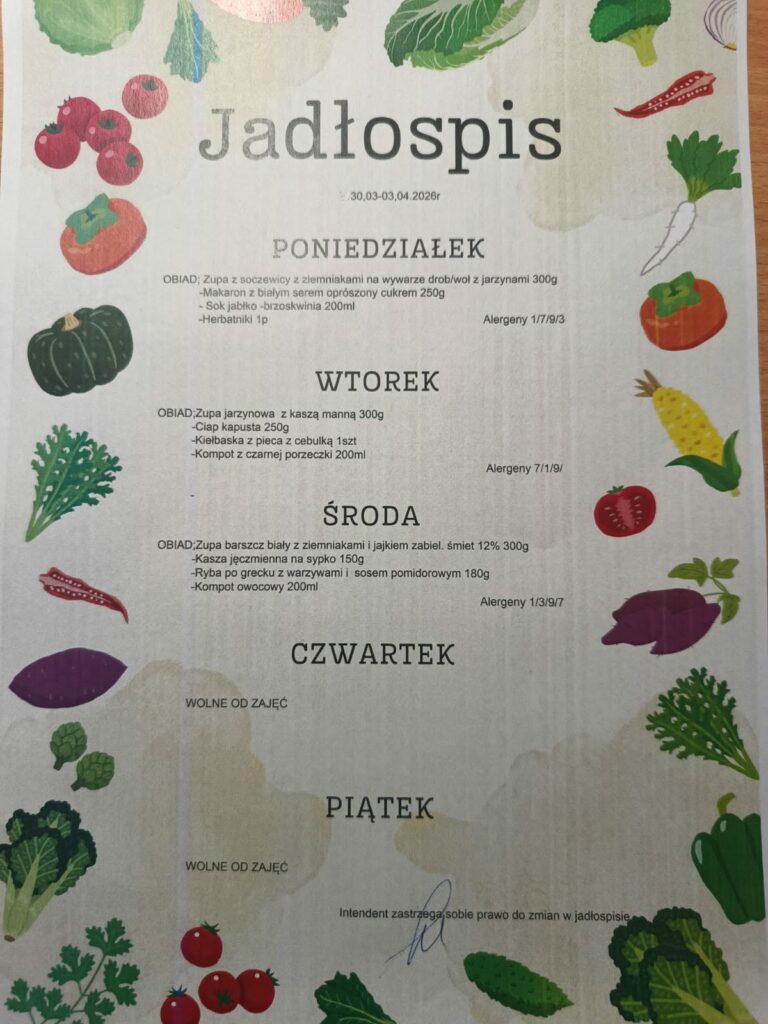 Płatność za obiady zawsze do 20-go każdego miesiąca.